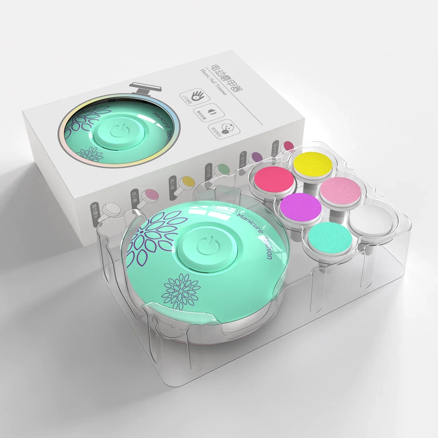The Electric baby nail trimmer takes all the stress and anxiety out of the task. The trimmer comes with 3 grades of file for infants, 2 for adults and a polishing file, all conveniently colour coded.